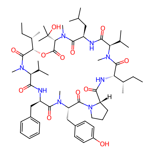 | SMILES | CC[C@H](C)[C@H]1C(=O)N([C@@H](C(=O)N[C@@H](C(=O)N([C@H](C(=O)O[C@H](C(=O)N([C@H](C(=O)N[C@@H](C(=O)N([C@H](C(=O)N2CCC[C@H]2C(=O)N1)CC3=CC=C(C=C3)O)C)CC4=CC=CC=C4)C(C)C)C)[C@@H](C)CC)C(C)(C)O)C)CC(C)C)C(C)C)C |