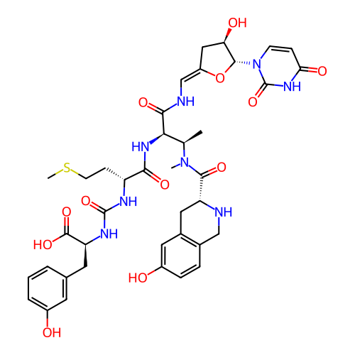| SMILES | C[C@H]([C@H](C(=O)N/C=C\1/C[C@H]([C@@H](O1)N2C=CC(=O)NC2=O)O)NC(=O)[C@@H](CCSC)NC(=O)N[C@@H](CC3=CC(=CC=C3)O)C(=O)O)N(C)C(=O)[C@H]4CC5=C(CN4)C=CC(=C5)O |