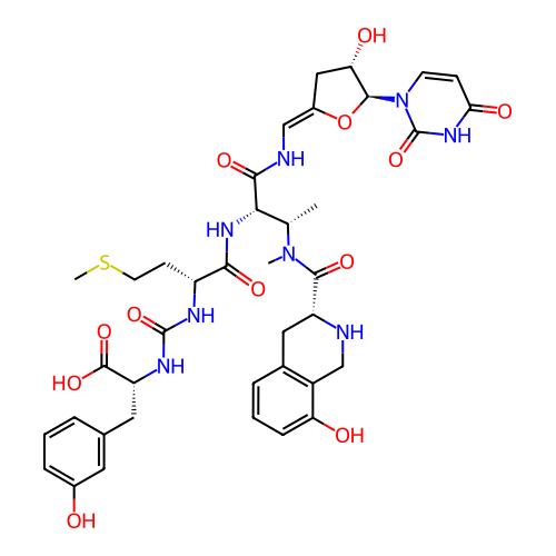 | SMILES | C[C@@H]([C@@H](C(=O)N/C=C\1/C[C@@H]([C@H](O1)N2C=CC(=O)NC2=O)O)NC(=O)[C@@H](CCSC)NC(=O)N[C@H](CC3=CC(=CC=C3)O)C(=O)O)N(C)C(=O)[C@H]4CC5=C(CN4)C(=CC=C5)O |
