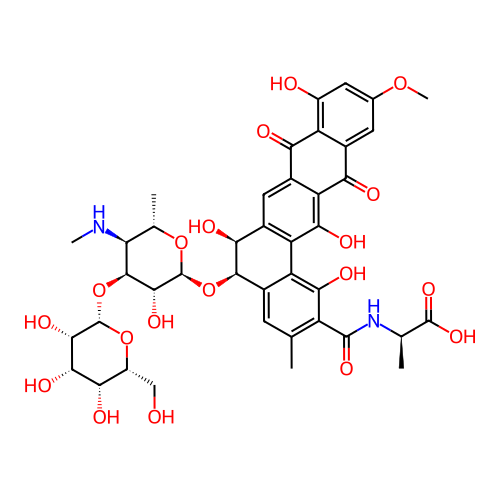 | SMILES | C[C@H]1[C@@H]([C@@H]([C@H]([C@@H](O1)O[C@H]2[C@H](C3=C(C4=C(C(=C(C=C24)C)C(=O)N[C@H](C)C(=O)O)O)C(=C5C(=C3)C(=O)C6=C(C=C(C=C6C5=O)OC)O)O)O)O)O[C@H]7[C@H]([C@H]([C@H]([C@H](O7)CO)O)O)O)NC |