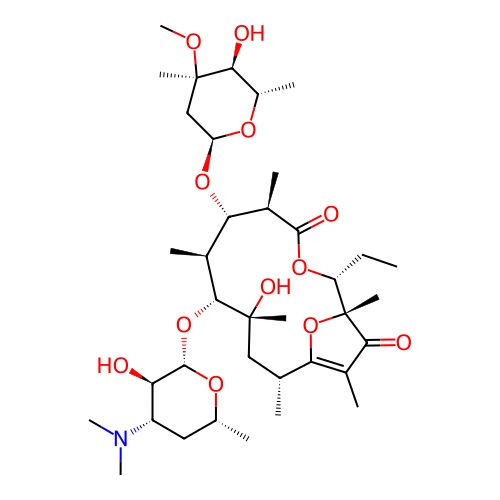| SMILES | CC[C@H]1OC(=O)[C@H](C)[C@@H](O[C@H]2C[C@@](C)(OC)[C@@H](O)[C@H](C)O2)[C@H](C)[C@@H](O[C@@H]2O[C@H](C)C[C@H](N(C)C)[C@H]2O)[C@](C)(O)C[C@@H](C)C2=C(C)C(=O)[C@]1(C)O2 |