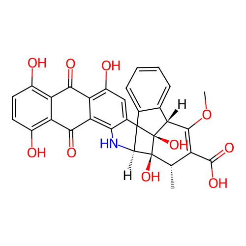 | SMILES | C[C@H]1C(=C([C@H]2C3=CC=CC=C3[C@H]4[C@@]1([C@@]2(C5=CC(=C6C(=C5N4)C(=O)C7=C(C=CC(=C7C6=O)O)O)O)O)O)OC)C(=O)O |