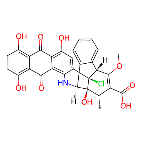 | SMILES | C[C@H]1C(=C([C@H]2C3=CC=CC=C3[C@H]4[C@@]1([C@@]2(C5=CC(=C6C(=C5N4)C(=O)C7=C(C=CC(=C7C6=O)O)O)O)Cl)O)OC)C(=O)O |