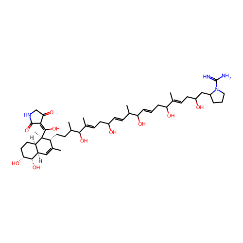 | SMILES | CC1=C[C@@H]2[C@@H](CC[C@H]([C@H]2O)O)[C@@]([C@@H]1CCC(C)C(/C(=C/CC(/C=C/C(C)C(/C=C/CC(/C(=C/CC(CC3CCCN3C(=N)N)O)/C)O)O)O)/C)O)(C)C(=C4C(=O)CNC4=O)O |