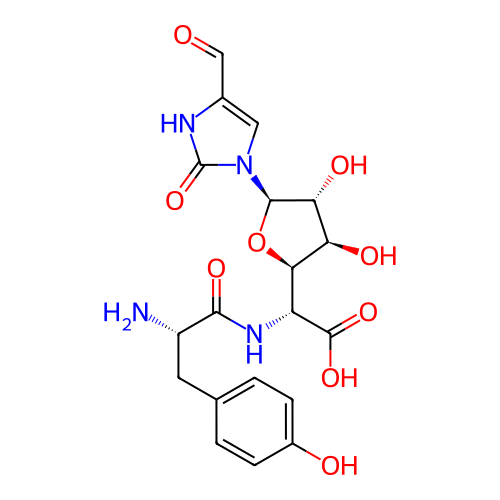 | SMILES | C1=CC(=CC=C1C[C@@H](C(=O)N[C@H]([C@@H]2[C@@H]([C@H]([C@@H](O2)N3C=C(NC3=O)C=O)O)O)C(=O)O)N)O |