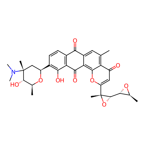 | SMILES | C[C@H]1[C@@H](O1)[C@H]2[C@@](O2)(C)C3=CC(=O)C4=C(C=C5C(=C4O3)C(=O)C6=C(C5=O)C=CC(=C6O)[C@@H]7C[C@@]([C@H]([C@@H](O7)C)O)(C)N(C)C)C |