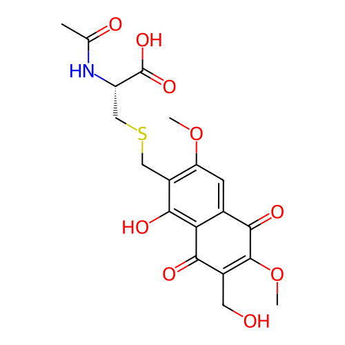 | SMILES | CC(=O)N[C@@H](CSCC1=C(C=C2C(=C1O)C(=O)C(=C(C2=O)OC)CO)OC)C(=O)O |