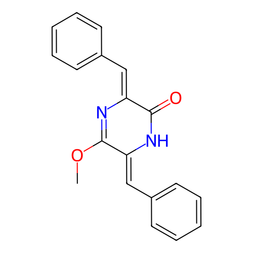 | InChI | InChI=1S/C19H16N2O2/c1-23-19-17(13-15-10-6-3-7-11-15)20-18(22)16(21-19)12-14-8-4-2-5-9-14/h2-13H,1H3,(H,20,22)/b16-12-,17-13- |