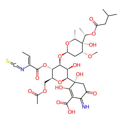 | SMILES | C/C=C(/C(=O)O[C@H]1[C@@H](O[C@@H]([C@@H]([C@@H]1O[C@@H]2C[C@H]([C@@]([C@H](O2)C)([C@H](C)OC(=O)CC(C)C)O)OC)O)[C@]3(CC(=O)C(=N)C(=C3O)C(=O)O)O)COC(=O)C)\N=C=S |