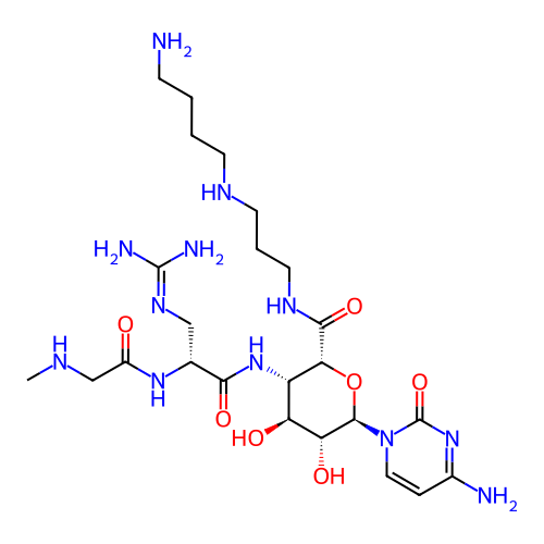 | SMILES | CNCC(=O)N[C@H](CN=C(N)N)C(=O)N[C@H]1[C@@H]([C@H]([C@@H](O[C@H]1C(=O)NCCCNCCCCN)N2C=CC(=NC2=O)N)O)O |