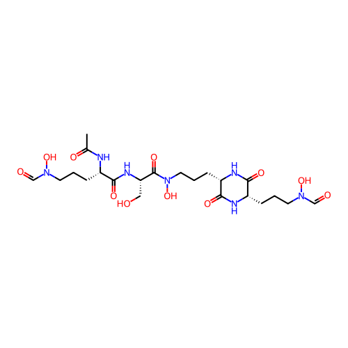 | SMILES | CC(=O)N[C@@H](CCCN(C=O)O)C(=O)N[C@@H](CO)C(=O)N(CCC[C@H]1C(=O)N[C@H](C(=O)N1)CCCN(C=O)O)O |