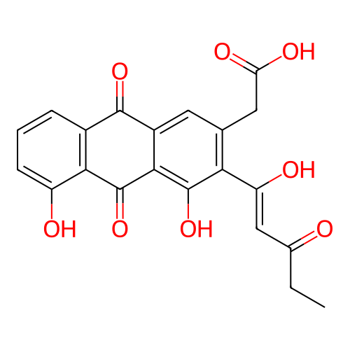 | InChI | InChI=1S/C21H16O8/c1-2-10(22)8-14(24)16-9(7-15(25)26)6-12-18(20(16)28)21(29)17-11(19(12)27)4-3-5-13(17)23/h3-6,8,23-24,28H,2,7H2,1H3,(H,25,26)/b14-8- |
