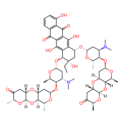 | SMILES | CC[C@@]1(C[C@H](C2=C(C3=C(C(=C2[C@@H]1O[C@@H]4C[C@@H]([C@H]([C@H](O4)C)O[C@@H]5C[C@@H]6[C@@H]([C@H](O5)C)O[C@@H]7[C@@H](O6)CC(=O)[C@H](O7)C)N(C)C)O)C(=O)C8=C(C3=O)C(=CC=C8)O)O)O[C@@H]9C[C@H]([C@H]([C@@H](O9)C)O[C@@H]1C[C@H]2[C@H]([C@@H](O1)C)O[C@@H]1[C@@H](O2)CC(=O)[C@@H](O1)C)N(C)C)O |