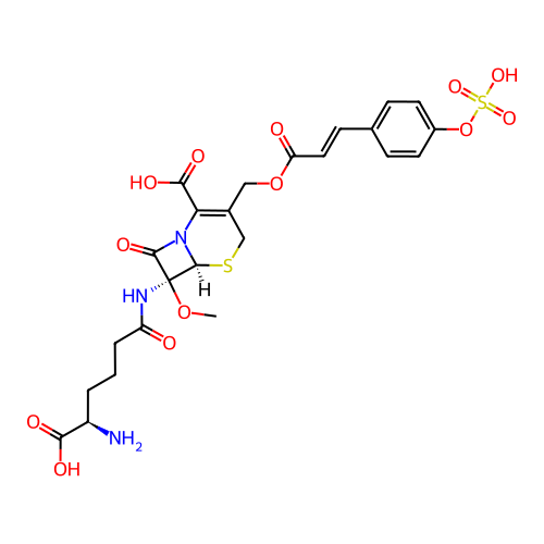 | InChI | InChI=1S/C24H27N3O13S2/c1-38-24(26-17(28)4-2-3-16(25)20(30)31)22(34)27-19(21(32)33)14(12-41-23(24)27)11-39-18(29)10-7-13-5-8-15(9-6-13)40-42(35,36)37/h5-10,16,23H,2-4,11-12,25H2,1H3,(H,26,28)(H,30,31)(H,32,33)(H,35,36,37)/b10-7+/t16-,23+,24+/m1/s1 |