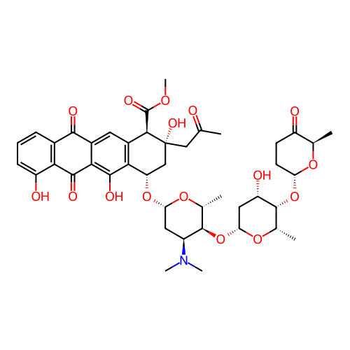 | SMILES | C[C@@H]1[C@H]([C@H](C[C@@H](O1)O[C@H]2C[C@@]([C@@H](C3=C2C(=C4C(=C3)C(=O)C5=C(C4=O)C(=CC=C5)O)O)C(=O)OC)(CC(=O)C)O)N(C)C)O[C@@H]6C[C@@H]([C@@H]([C@@H](O6)C)O[C@@H]7CCC(=O)[C@H](O7)C)O |