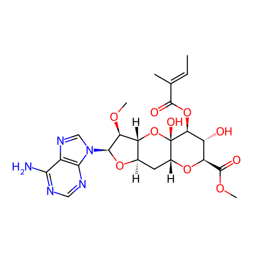 | SMILES | C/C=C(\C)/C(=O)O[C@H]1[C@@H]([C@H](O[C@H]2[C@@]1(O[C@@H]3[C@@H](C2)O[C@H]([C@H]3OC)N4C=NC5=C4N=CN=C5N)O)C(=O)OC)O |