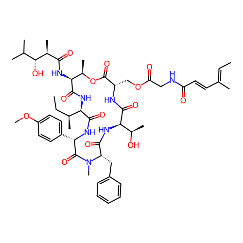 | SMILES | CC[C@H](C)[C@@H]1C(=O)N[C@H](C(=O)N([C@H](C(=O)N[C@@H](C(=O)N[C@H](C(=O)O[C@@H]([C@@H](C(=O)N1)NC(=O)[C@H](C)[C@@H](C(C)C)O)C)COC(=O)CNC(=O)/C=C/C(=C/C)/C)[C@@H](C)O)CC2=CC=CC=C2)C)C3=CC=C(C=C3)OC |