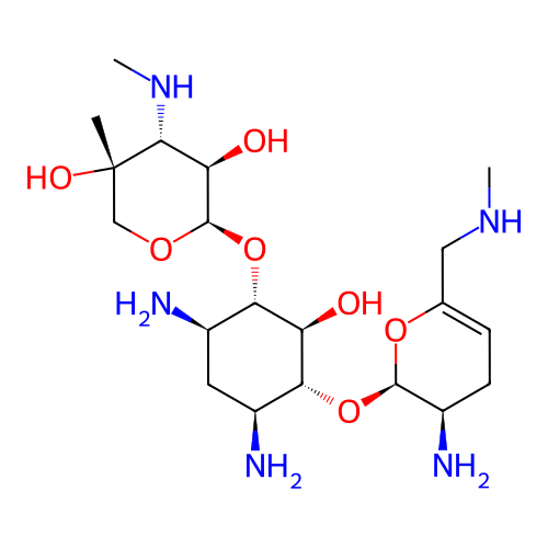 | SMILES | C[C@@]1(CO[C@@H]([C@@H]([C@H]1NC)O)O[C@H]2[C@@H](C[C@@H]([C@H]([C@@H]2O)O[C@@H]3[C@@H](CC=C(O3)CNC)N)N)N)O |