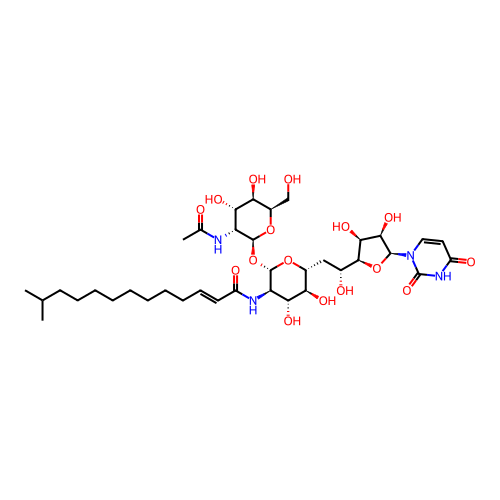 | SMILES | CC(C)CCCCCCCC/C=C/C(=O)N[C@@H]1[C@H]([C@@H]([C@H](O[C@H]1O[C@H]2[C@@H]([C@@H]([C@H]([C@H](O2)CO)O)O)NC(=O)C)C[C@H]([C@H]3[C@H]([C@H]([C@H](O3)N4C=CC(=O)NC4=O)O)O)O)O)O |