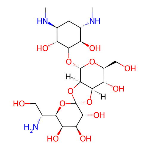 | SMILES | CN[C@H]1C[C@@H]([C@H](C([C@@H]1O)O[C@H]2[C@H]3[C@@H]([C@H]([C@@H](O2)CO)O)O[C@]4(O3)[C@@H]([C@H]([C@H]([C@H](O4)[C@@H](CO)N)O)O)O)O)NC |