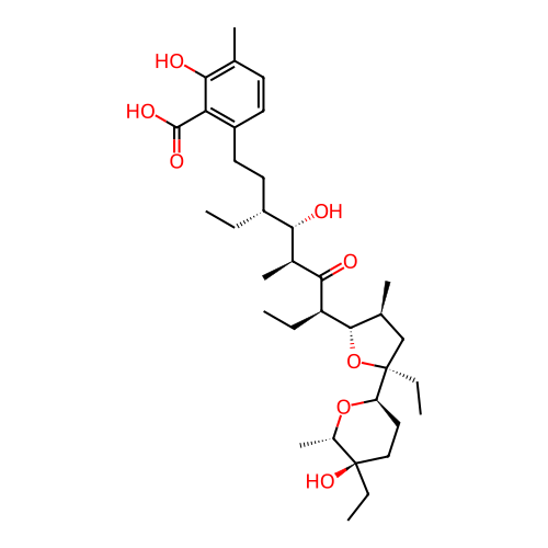 | SMILES | CC[C@H](CCC1=C(C(=C(C=C1)C)O)C(=O)O)[C@@H]([C@H](C)C(=O)[C@H](CC)[C@@H]2[C@H](C[C@@](O2)(CC)[C@H]3CC[C@@]([C@@H](O3)C)(CC)O)C)O |