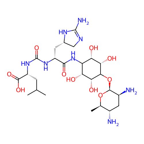 | InChI | InChI=1S/C25H46N8O10/c1-8(2)4-14(22(39)40)32-25(41)31-13(5-10-7-29-24(28)30-10)21(38)33-15-16(34)18(36)20(19(37)17(15)35)43-23-12(27)6-11(26)9(3)42-23/h8-20,23,34-37H,4-7,26-27H2,1-3H3,(H,33,38)(H,39,40)(H3,28,29,30)(H2,31,32,41)/t9-,10+,11+,12+,13-,14-,15?,16-,17+,18-,19+,20?,23+/m1/s1 |