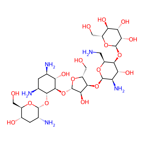 | SMILES | C1[C@H]([C@@H]([C@H]([C@@H]([C@H]1N)O[C@@H]2[C@@H](C[C@@H]([C@H](O2)CO)O)N)O[C@H]3[C@@H]([C@@H]([C@H](O3)CO)O[C@@H]4[C@@H]([C@H]([C@@H]([C@@H](O4)CN)O[C@@H]5[C@H]([C@H]([C@@H]([C@H](O5)CO)O)O)O)O)N)O)O)N |