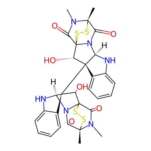 | SMILES | CN1C(=O)[C@]23SS[C@@]1(C)C(=O)N2[C@H]1NC2=CC=CC=C2[C@@]1([C@@]12C4=CC=CC=C4N[C@@H]1N1C(=O)[C@]4(C)SS[C@]1(C(=O)N4C)[C@H]2O)[C@@H]3O |