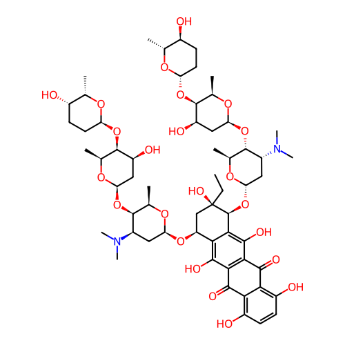 | SMILES | CC[C@]1(C[C@@H](C2=C(C3=C(C(=C2[C@@H]1O[C@H]4C[C@H]([C@H]([C@@H](O4)C)O[C@H]5C[C@H]([C@H]([C@H](O5)C)O[C@H]6CC[C@@H]([C@H](O6)C)O)O)N(C)C)O)C(=O)C7=C(C=CC(=C7C3=O)O)O)O)O[C@H]8C[C@H]([C@H]([C@H](O8)C)O[C@@H]9C[C@@H]([C@@H]([C@@H](O9)C)O[C@H]1CC[C@@H]([C@@H](O1)C)O)O)N(C)C)O |