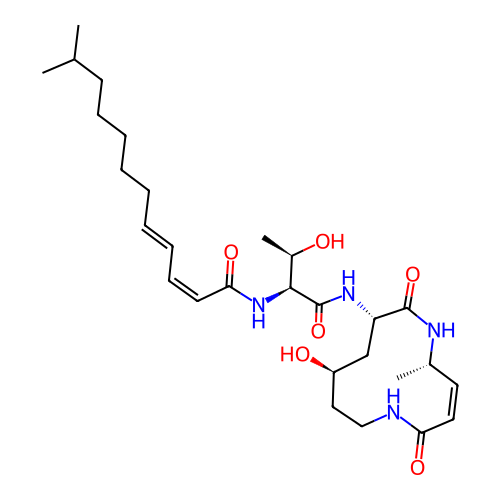 | SMILES | C[C@H]1/C=C\C(=O)NCC[C@H](C[C@@H](C(=O)N1)NC(=O)[C@H]([C@@H](C)O)NC(=O)/C=C\C=C\CCCCCC(C)C)O |