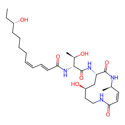 | SMILES | CC[C@@H](CCCC/C=C\C=C\C(=O)N[C@H]([C@@H](C)O)C(=O)N[C@H]1C[C@@H](CCNC(=O)/C=C\[C@H](NC1=O)C)O)O |