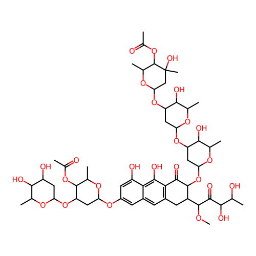 | SMILES | CC1C(C(CC(O1)OC2CC(OC(C2OC(=O)C)C)OC3=CC4=CC5=C(C(=O)C(C(C5)C(C(=O)C(C(C)O)O)OC)OC6CC(C(C(O6)C)O)OC7CC(C(C(O7)C)O)OC8CC(C(C(O8)C)OC(=O)C)(C)O)C(=C4C(=C3)O)O)O)O |