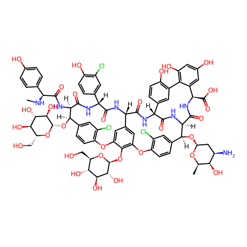 | SMILES | C[C@@H]1[C@@H]([C@@H](C[C@@H](O1)O[C@@H]2[C@@H]3C(=O)N[C@@H](C4=CC(=CC(=C4C5=C(C=CC(=C5)[C@H](C(=O)N3)NC(=O)[C@@H]6C7=CC(=C(C(=C7)OC8=C(C=C(C=C8)[C@H]([C@H](C(=O)N[C@@H](C(=O)N6)C9=CC(=C(C=C9)O)Cl)NC(=O)[C@H](C1=CC=C(C=C1)O)NC)O[C@H]1[C@@H]([C@H]([C@@H]([C@H](O1)CO)O)O)O)Cl)O[C@H]1[C@@H]([C@H]([C@@H]([C@H](O1)CO)O)O)O)OC1=C(C=C2C=C1)Cl)O)O)O)C(=O)O)N)O |