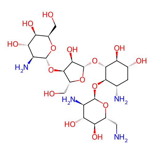| InChI | InChI=1S/C23H44N4O15/c24-2-7-13(32)15(34)10(26)21(37-7)40-18-5(25)1-6(30)12(31)20(18)42-23-17(36)19(9(4-29)39-23)41-22-11(27)16(35)14(33)8(3-28)38-22/h5-23,28-36H,1-4,24-27H2/t5-,6+,7+,8+,9+,10+,11-,12-,13+,14-,15+,16-,17+,18+,19+,20+,21+,22+,23-/m0/s1 |