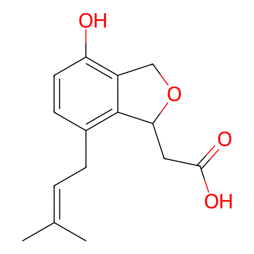 | SMILES | CC(=CCC1=C2C(OCC2=C(C=C1)O)CC(=O)O)C |