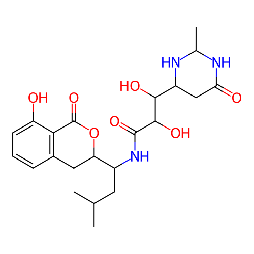 | SMILES | CC1NC(CC(=O)N1)C(C(C(=O)NC(CC(C)C)C2CC3=C(C(=CC=C3)O)C(=O)O2)O)O |