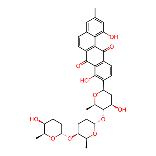 | SMILES | C[C@H]1[C@H](CC[C@@H](O1)O[C@H]2CC[C@@H](O[C@H]2C)O[C@@H]3[C@H](O[C@H](C[C@H]3O)C4=C(C5=C(C=C4)C(=O)C6=C(C5=O)C=CC7=CC(=CC(=C76)O)C)O)C)O |