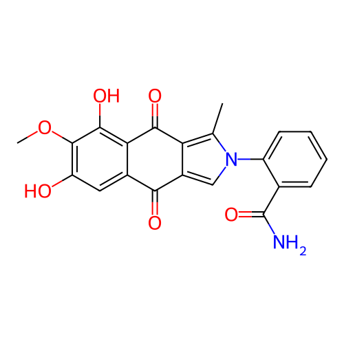 | SMILES | CC1=C2C(=CN1C3=CC=CC=C3C(=O)N)C(=O)C4=CC(=C(C(=C4C2=O)O)OC)O |