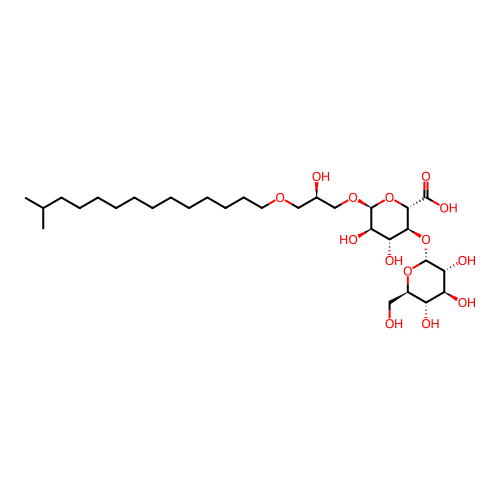 | InChI | InChI=1S/C30H56O14/c1-18(2)13-11-9-7-5-3-4-6-8-10-12-14-40-16-19(32)17-41-29-25(37)23(35)26(27(44-29)28(38)39)43-30-24(36)22(34)21(33)20(15-31)42-30/h18-27,29-37H,3-17H2,1-2H3,(H,38,39)/t19-,20-,21-,22+,23-,24-,25-,26+,27+,29+,30-/m1/s1 |