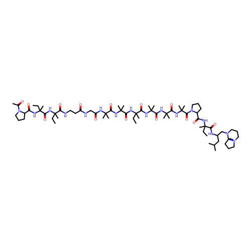 | SMILES | CCC(C)(C(=O)NCCC(=O)NCC(=O)NC(C)(C)C(=O)NC(C)(C)C(=O)NC(C)(CC)C(=O)NC(C)(C)C(=O)NC(C)(C)C(=O)NC(C)(C)C(=O)N1CCCC1C(=O)NC(C)(CC)C(=O)NC(CC(C)C)CN2CCC[N+]3=C2CCC3)NC(=O)C(C)(CC)NC(=O)C4CCCN4C(=O)C |