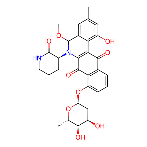 | SMILES | C[C@H]1[C@@H]([C@@H](C[C@@H](O1)OC2=CC=CC3=C2C(=O)C4=C(C3=O)C5=C(C=C(C=C5C(N4[C@H]6CCCNC6=O)OC)C)O)O)O |