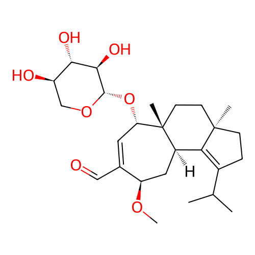 | InChI | InChI=1S/C26H40O7/c1-14(2)16-6-7-25(3)8-9-26(4)17(21(16)25)11-19(31-5)15(12-27)10-20(26)33-24-23(30)22(29)18(28)13-32-24/h10,12,14,17-20,22-24,28-30H,6-9,11,13H2,1-5H3/t17-,18-,19-,20+,22+,23-,24+,25-,26-/m1/s1 |