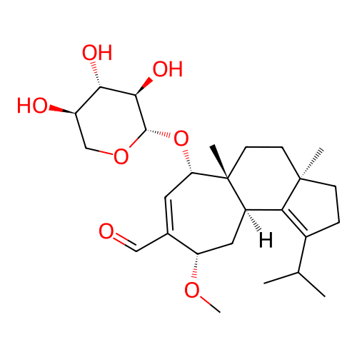 | InChI | InChI=1S/C26H40O7/c1-14(2)16-6-7-25(3)8-9-26(4)17(21(16)25)11-19(31-5)15(12-27)10-20(26)33-24-23(30)22(29)18(28)13-32-24/h10,12,14,17-20,22-24,28-30H,6-9,11,13H2,1-5H3/t17-,18-,19+,20+,22+,23-,24+,25-,26-/m1/s1 |