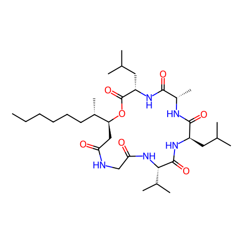 | SMILES | CCCCCC[C@H](C)[C@@H]1CC(=O)NCC(=O)N[C@H](C(=O)N[C@@H](C(=O)N[C@H](C(=O)N[C@H](C(=O)O1)CC(C)C)C)CC(C)C)C(C)C |