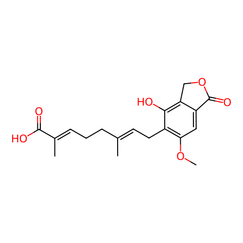| InChI | InChI=1S/C19H22O6/c1-11(5-4-6-12(2)18(21)22)7-8-13-16(24-3)9-14-15(17(13)20)10-25-19(14)23/h6-7,9,20H,4-5,8,10H2,1-3H3,(H,21,22)/b11-7+,12-6+ |