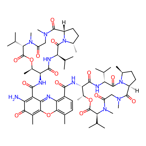 | SMILES | C[C@H]1CC[C@@H]2N1C(=O)[C@H](NC(=O)[C@H]([C@H](OC(=O)[C@@H](N(C(=O)CN(C2=O)C)C)C(C)C)C)NC(=O)C3=C4C(=C(C=C3)C)OC5=C(C(=O)C(=C(C5=N4)C(=O)N[C@H]6[C@H](OC(=O)[C@@H](N(C(=O)CN(C(=O)[C@@H]7CC[C@@H](N7C(=O)[C@H](NC6=O)C(C)C)C)C)C)C(C)C)C)N)C)C(C)C |