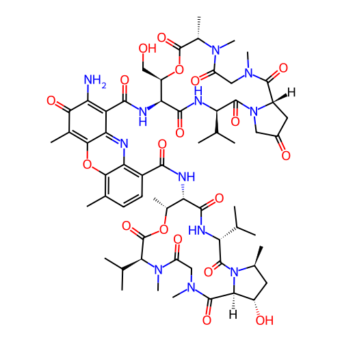 | SMILES | C[C@H]1C[C@@H]([C@@H]2N1C(=O)[C@H](NC(=O)[C@H]([C@H](OC(=O)[C@@H](N(C(=O)CN(C2=O)C)C)C(C)C)C)NC(=O)C3=C4C(=C(C=C3)C)OC5=C(C(=O)C(=C(C5=N4)C(=O)N[C@H]6[C@H](OC(=O)[C@@H](N(C(=O)CN(C(=O)[C@@H]7CC(=O)CN7C(=O)[C@H](NC6=O)C(C)C)C)C)C)CO)N)C)C(C)C)O |