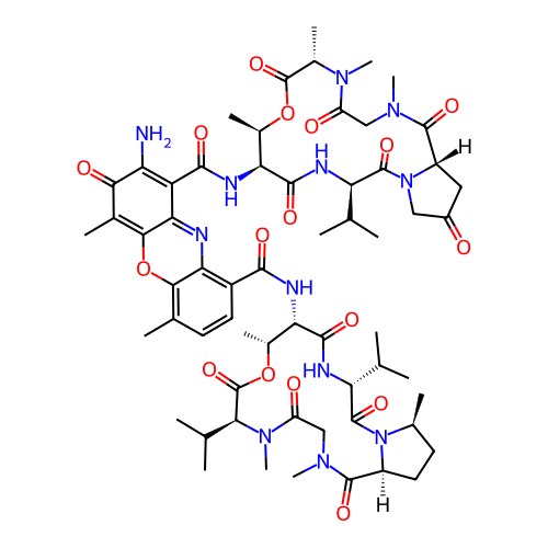 | SMILES | C[C@H]1CC[C@@H]2N1C(=O)[C@H](NC(=O)[C@H]([C@H](OC(=O)[C@@H](N(C(=O)CN(C2=O)C)C)C(C)C)C)NC(=O)C3=C4C(=C(C=C3)C)OC5=C(C(=O)C(=C(C5=N4)C(=O)N[C@H]6[C@H](OC(=O)[C@@H](N(C(=O)CN(C(=O)[C@@H]7CC(=O)CN7C(=O)[C@H](NC6=O)C(C)C)C)C)C)C)N)C)C(C)C |