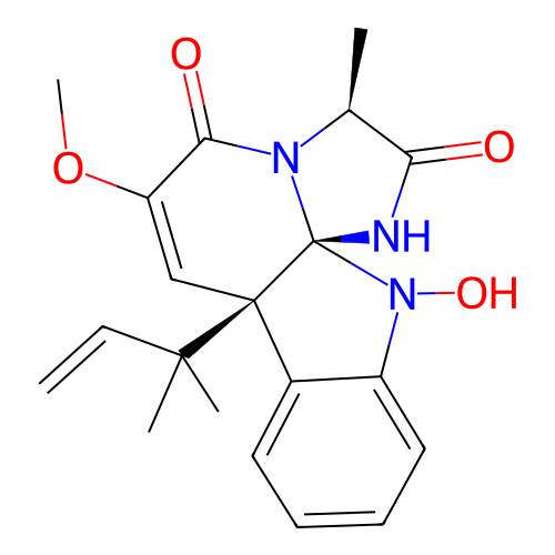 | SMILES | C[C@H]1C(=O)N[C@]23N1C(=O)C(=C[C@]2(C4=CC=CC=C4N3O)C(C)(C)C=C)OC |