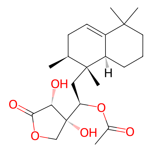 | InChI | InChI=1S/C22H34O6/c1-13-8-9-15-16(7-6-10-20(15,3)4)21(13,5)11-17(28-14(2)23)22(26)12-27-19(25)18(22)24/h9,13,16-18,24,26H,6-8,10-12H2,1-5H3/t13-,16+,17+,18-,21+,22-/m0/s1 |
